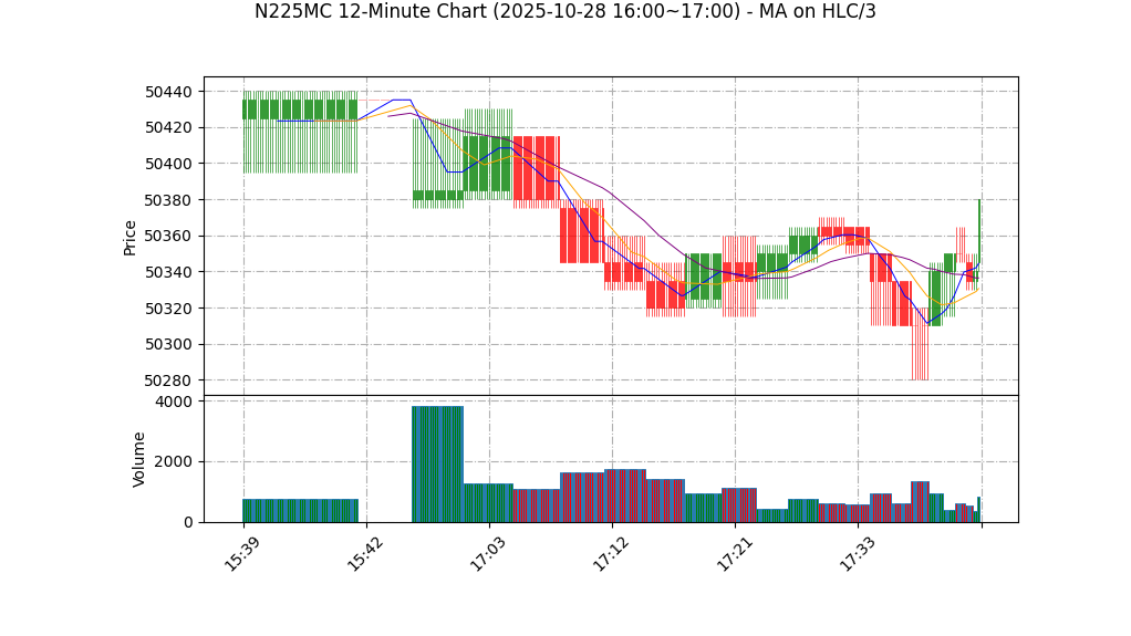 | 10-28 17:00 | 50345.00 | 50355.00 | 50340.00 | 50350.00 | 197 | 50401.50 | 53.0 | -45.218 | -0.75 |