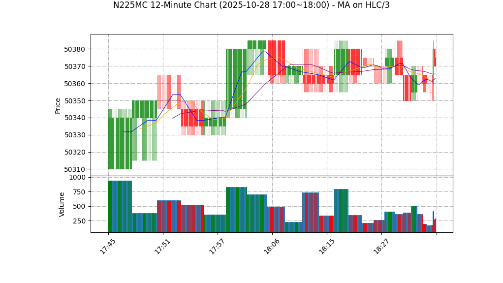 | 10-28 18:00 | 50370.00 | 50380.00 | 50370.00 | 50380.00 | 350 | 50393.25 | 54.2 | -38.980 | -0.75 |