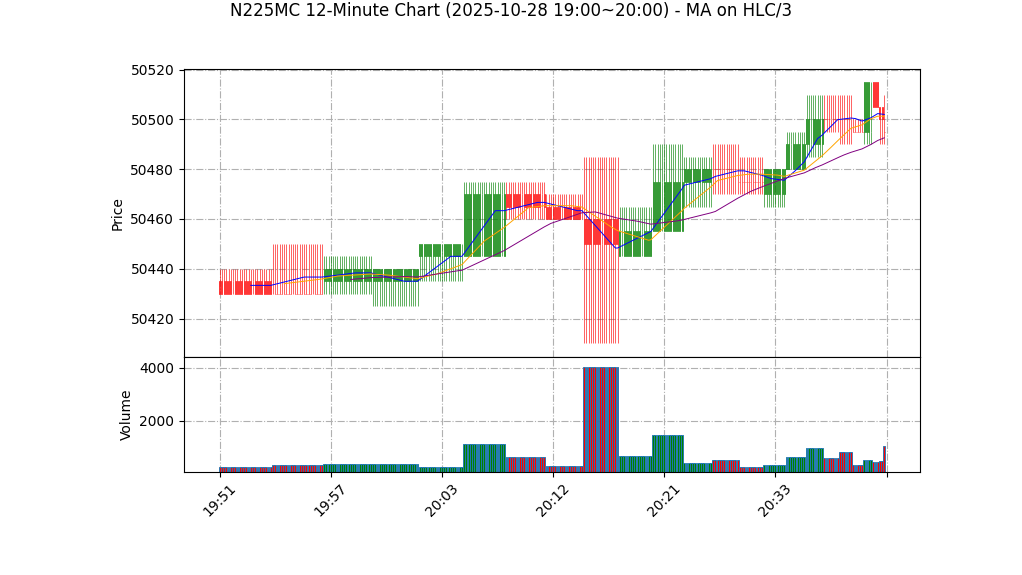 | 10-28 20:00 | 50495.00 | 50505.00 | 50490.00 | 50495.00 | 211 | 50396.00 | 58.7 | -20.761 | 2.25 |