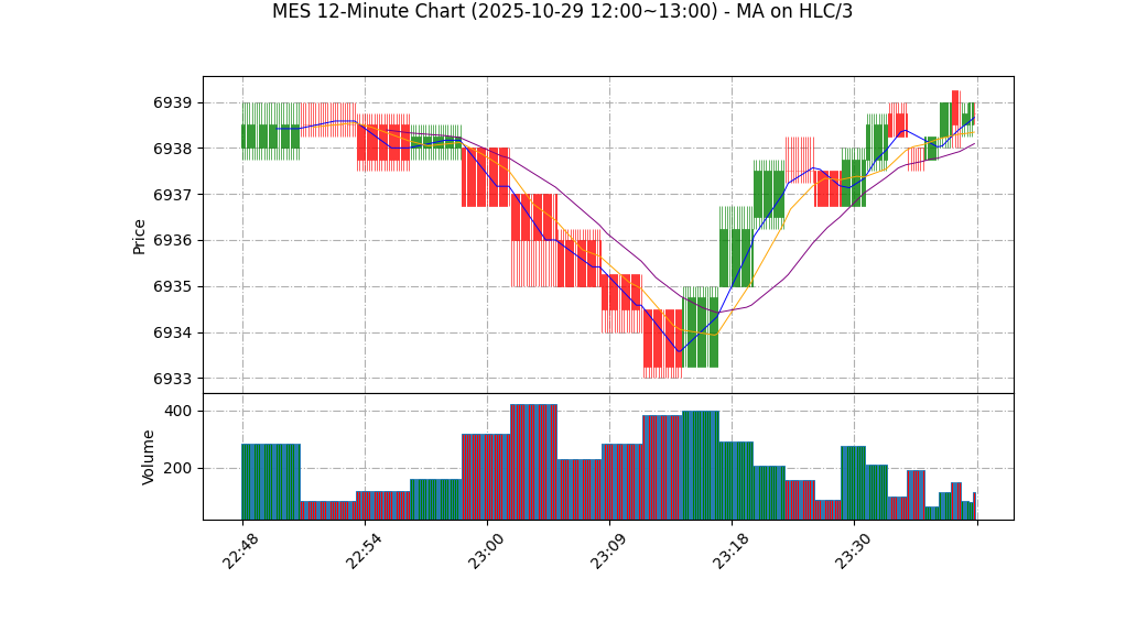 – 形态:近10小时呈窄幅整理(极小实体、极低振幅),当前K线收于6938.25,最高6938.75,最低6938.25,短线多空争夺在极窄区间。
