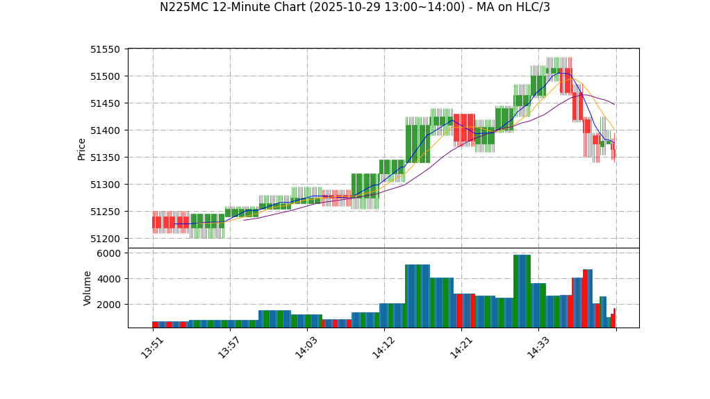 | 10-29 14:00 | 51365.00 | 51385.00 | 51360.00 | 51385.00 | 541 | 50790.00 | 79.0 | 60.484 | -2.50 |