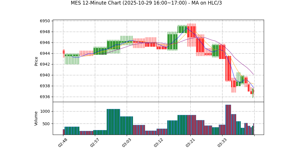 | 10-29 17:00 | 6937.25 | 6937.75 | 6936.00 | 6936.75 | 559 | 6929.86 | 61.9 | -0.172 | -0.50 |