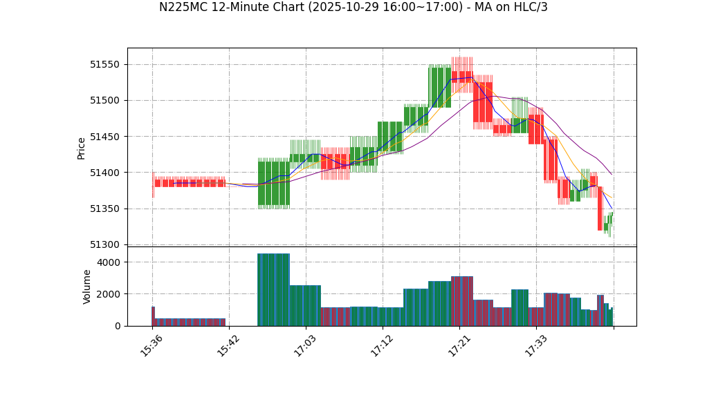| 10-29 17:00 | 51340.00 | 51345.00 | 51325.00 | 51340.00 | 1175 | 50891.25 | 74.1 | 44.790 | -2.50 |
