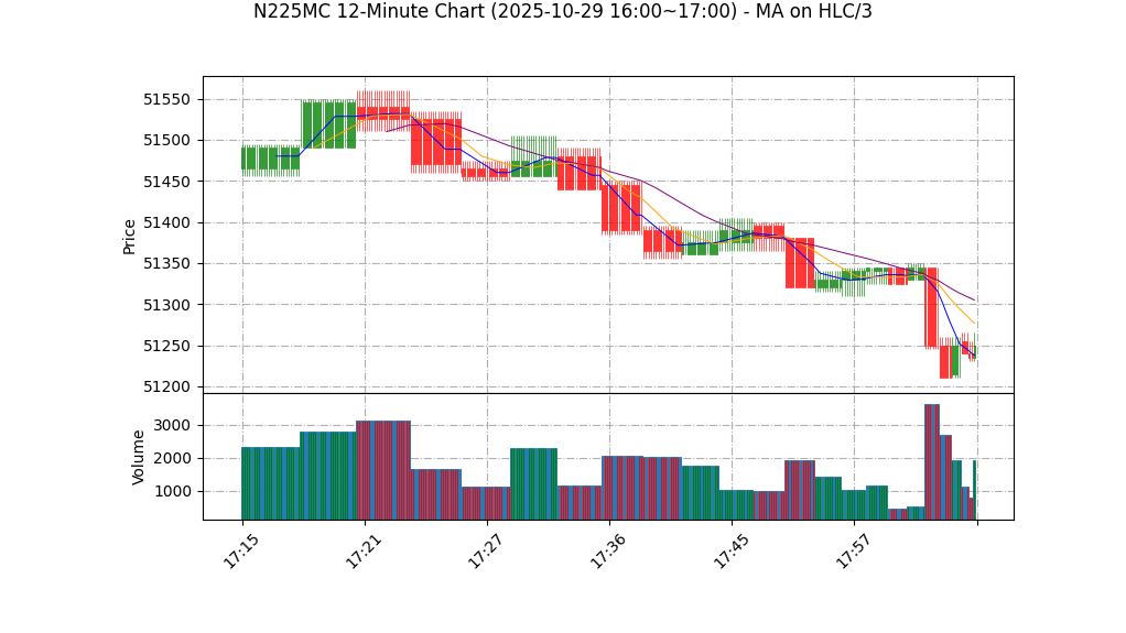 | 10-29 17:00 | 51340.00 | 51345.00 | 51325.00 | 51340.00 | 1175 | 50891.25 | 74.1 | 44.790 | -2.50 |