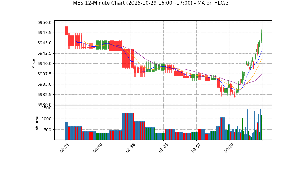 | 10-29 17:00 | 6937.25 | 6937.75 | 6936.00 | 6936.75 | 559 | 6929.86 | 61.9 | -0.172 | -0.50 |