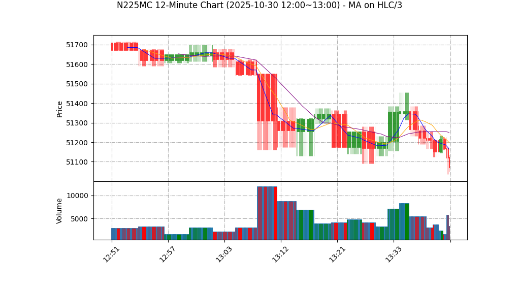 | 10-30 13:00 | 51125.00 | 51135.00 | 51070.00 | 51110.00 | 1840 | 51272.50 | 48.2 | -16.564 | -4.25 |