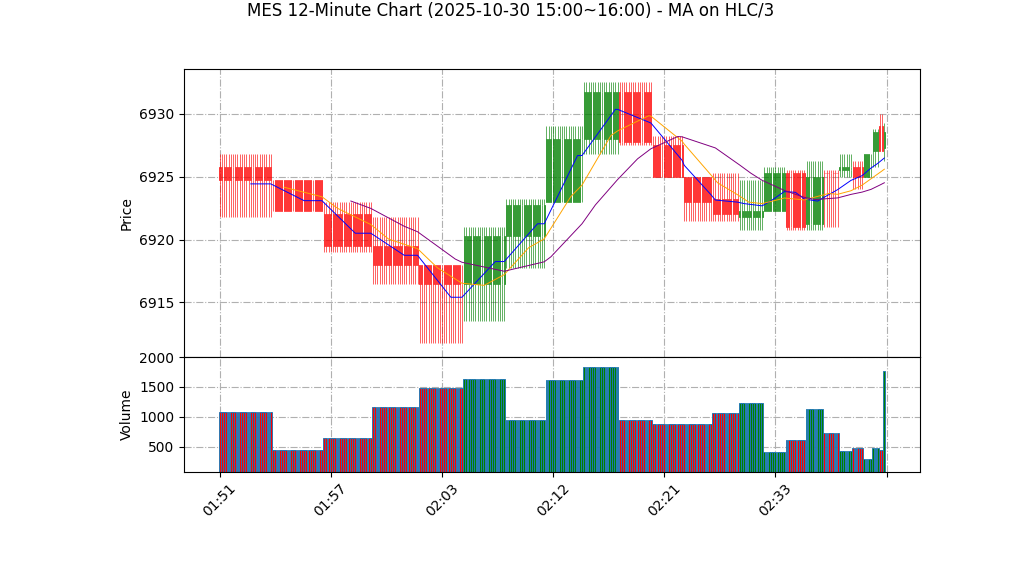 价格在6927.00-6928.00极窄区间内盘整,形态呈水平整理,无明确趋势方向。支撑位:6927.00(当日最低),阻力位:6930.24(MA20)。趋势强度弱,因价格变化为0%且波动率极低,市场处于犹豫状态,缺乏突破动能。