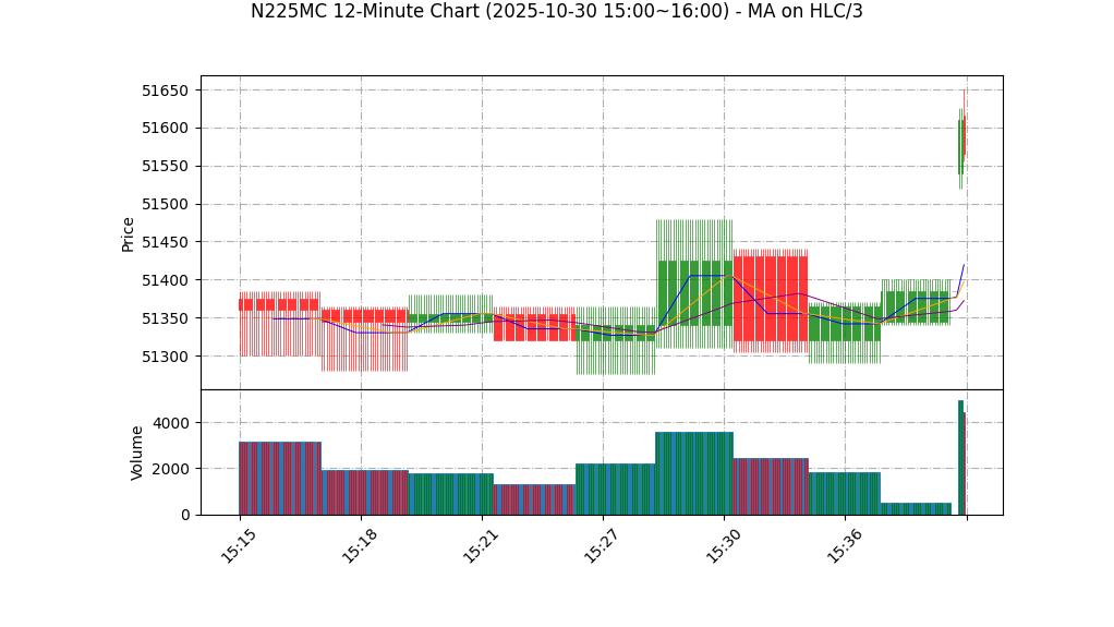 | 10-30 16:00 | 51540.00 | 51590.00 | 51520.00 | 51555.00 | 3014 | 51287.25 | 60.4 | 3.571 | 4.25 |