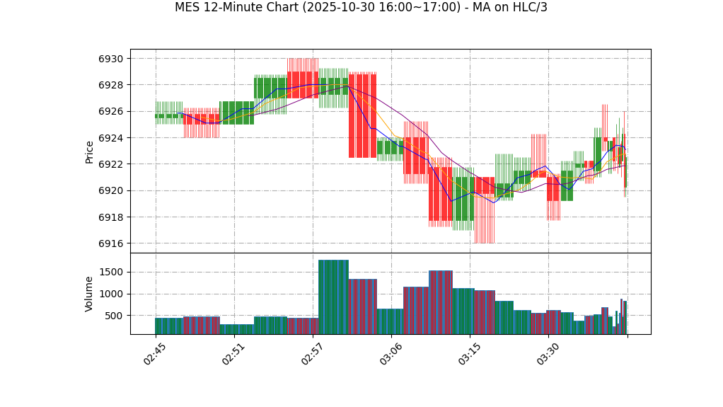 – 价格相对均线:收盘 6920.25 低于 MA20 6929.15(短期偏空信号),但差距较小(约8.9点),说明下行压力存在但不强烈。权重:30%。