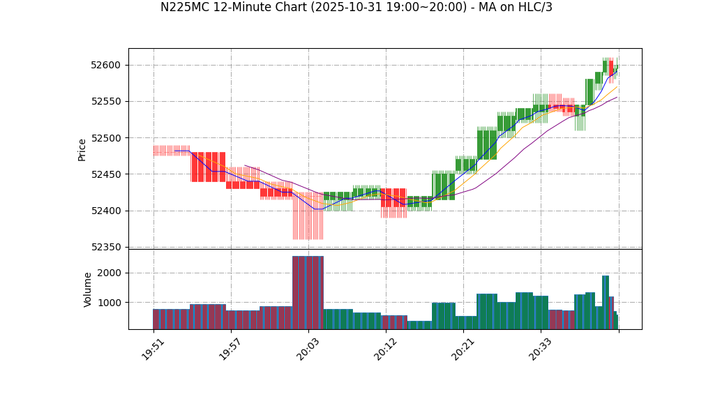 | 10-31 20:00 | 52595.00 | 52605.00 | 52585.00 | 52600.00 | 271 | 52003.50 | 67.1 | 41.496 | -1.50 |