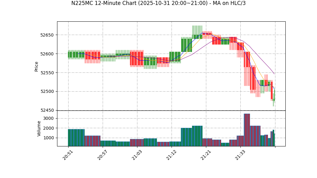| 10-31 21:00 | 52475.00 | 52500.00 | 52470.00 | 52490.00 | 660 | 52042.25 | 63.3 | 29.566 | -1.50 |