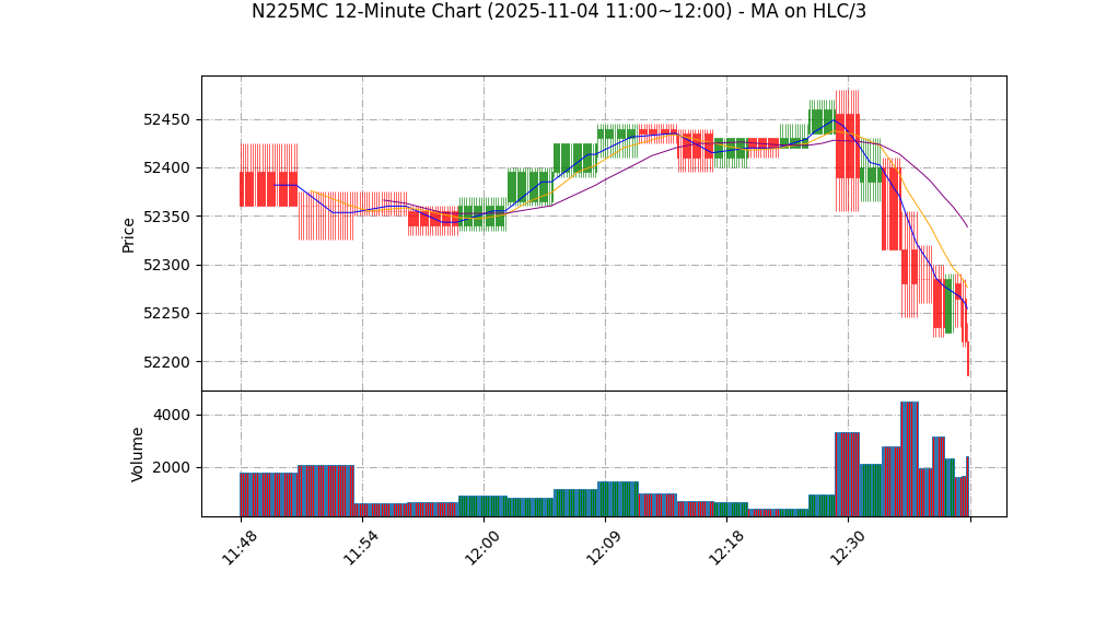 | 11-04 12:00 | 52185.00 | 52215.00 | 52175.00 | 52180.00 | 1242 | 52424.75 | 43.1 | -33.757 | -2.50 |