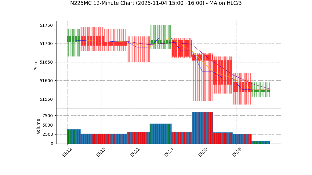 | 11-04 16:00 | 51550.00 | 51595.00 | 51545.00 | 51560.00 | 3634 | 52357.00 | 29.3 | -96.489 | 0.25 |