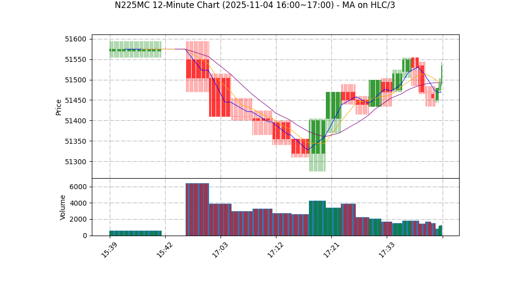 | 11-04 17:00 | 51490.00 | 51525.00 | 51485.00 | 51525.00 | 567 | 52312.25 | 28.7 | -113.951 | 0.25 |