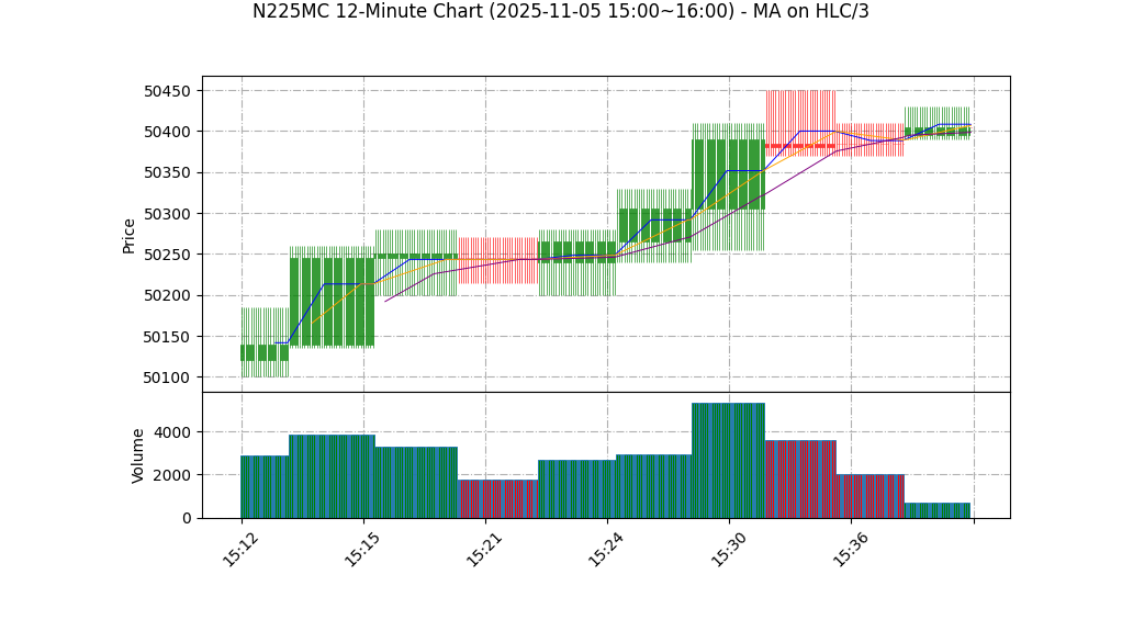 | 11-05 16:00 | 50445.00 | 50450.00 | 50355.00 | 50390.00 | 3873 | 50765.00 | 41.0 | -34.576 | -1.25 |
