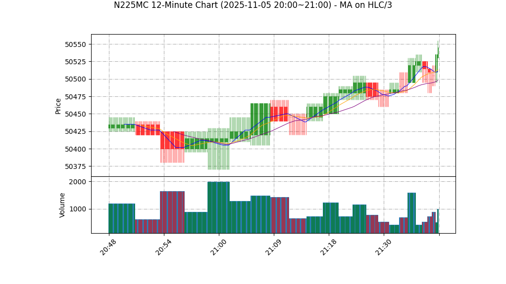 11-05 21:00 50540.00 50545.00 50525.00 50540.00 431 50555.25 45.1 91.202 0.25
