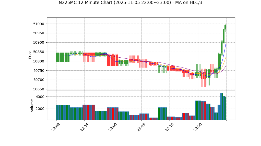 | 11-05 23:00 | 51015.00 | 51035.00 | 50980.00 | 51025.00 | 1282 | 50493.50 | 54.6 | 143.551 | 2.00 |