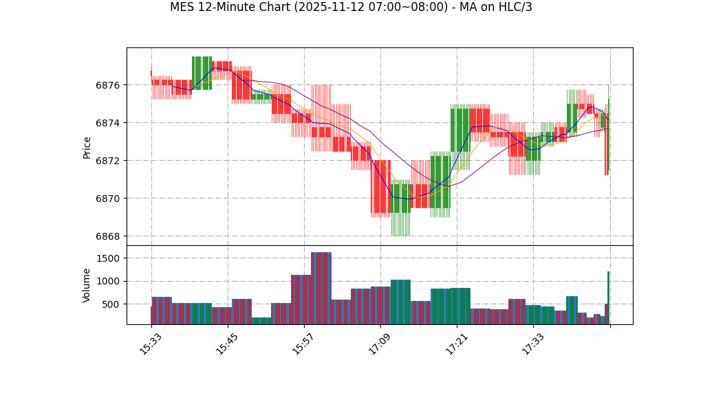 价格在6871.25-6872.50极窄区间内波动,形成横向整理形态,趋势强度弱;支撑位基于MA20(6853.59),阻力位为近期高点6872.50;波动率0.00%显示市场缺乏方向性突破,形态上无明确趋势反转信号,但窄幅震荡可能预示潜在下行压力。