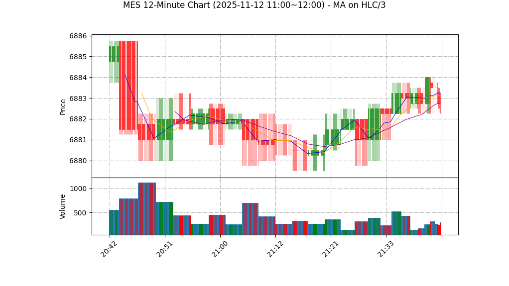 价格在6882.50附近盘整,10小时累计变化0.00%,形成窄幅震荡形态;支撑位基于MA20 6861.06,阻力位为近期高点6882.75;趋势强度弱,无明确方向性突破,结合上涨过热情绪,可能形成顶部盘整后下行。波动率0.00%表明市场缺乏动能,需警惕突破性波动。