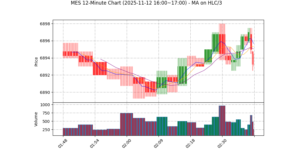 – 单根K线结构(开6893.25 高6893.50 低6893.00 收6893.00):极窄区间并收于近低位,短期抛压迹象,提示多头动力不足(权重约15%)。