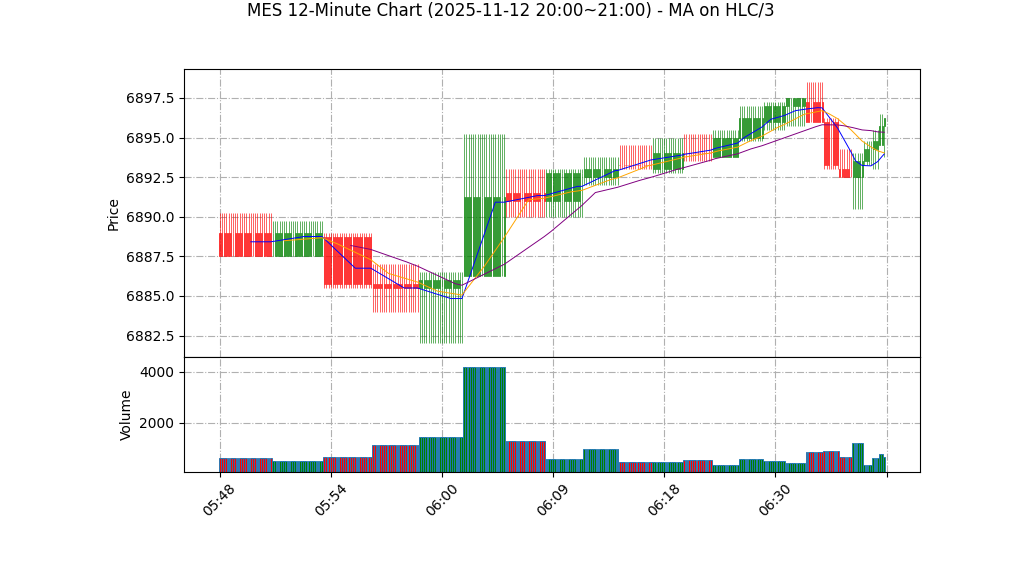 – 阻力位:最近高点 6896.25 即为短期阻力;心理阻力 6900 若被突破并配合收盘确认,可视为上攻起点。