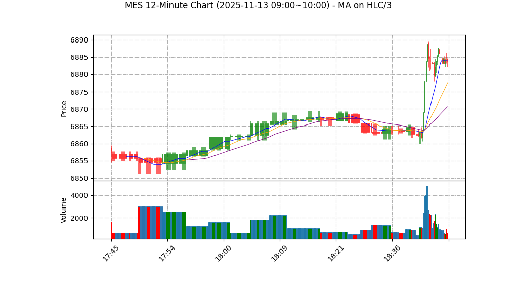 – 支撑/阻力:近期支撑:MA20附近 6880.8 及当日低位 6882.25;近期阻力:当小时高位 6886.25。这些点位相距极近,表明短线区间窄。