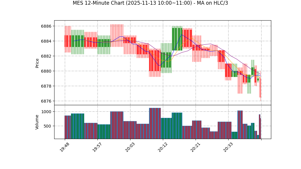 – 支撑阻力:即时支撑:本时段最低点 ~6878.75;近期阻力:MA20 ~6880.44 和本时段最高 ~6880。因波动极小,短期有效支撑/阻力区间非常窄(约±2-4点)。