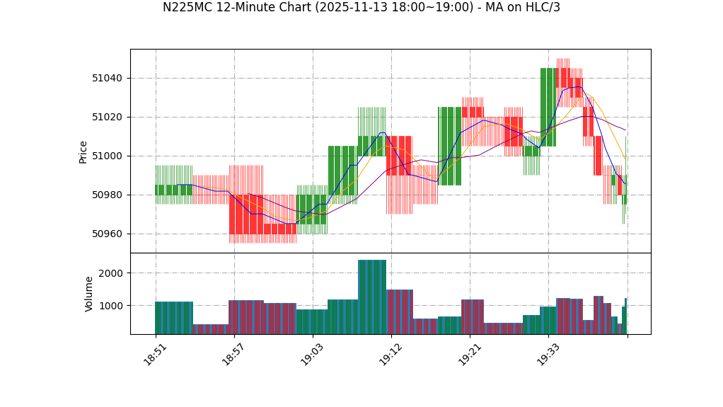 | 11-13 19:00 | 50975.00 | 50995.00 | 50970.00 | 50990.00 | 665 | 51180.00 | 44.4 | -35.956 | -4.00 |