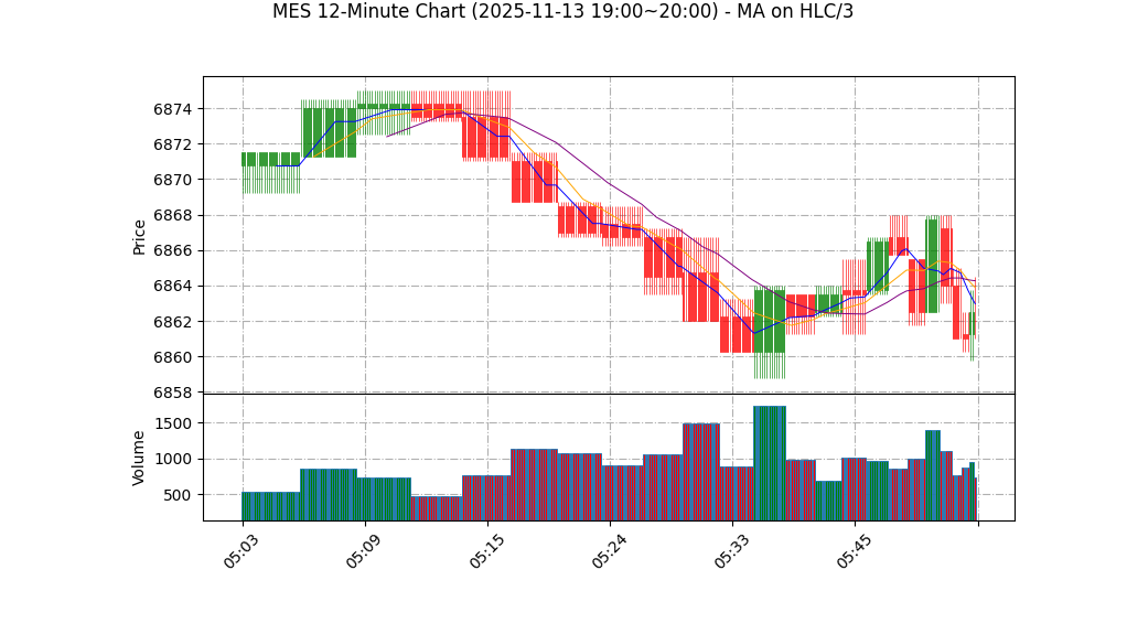 – 条件B(主动):价格实质性下破短期支撑6867.00并收出下行K线(以1~2个ticks确认),在6865附近确认破位后入场。