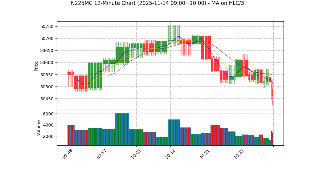 | 11-14 10:00 | 50465.00 | 50480.00 | 50450.00 | 50470.00 | 980 | 50691.75 | 43.8 | -13.757 | -1.00 |