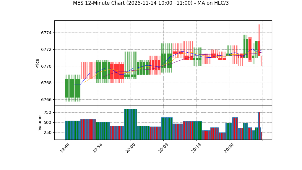 – 形态:仅有单条小时数据(开6771.00 高6771.50 低6771.00 收6771.25),属于极窄幅小实体,体现极端缩量或盘整,无法判断清晰K线形态。