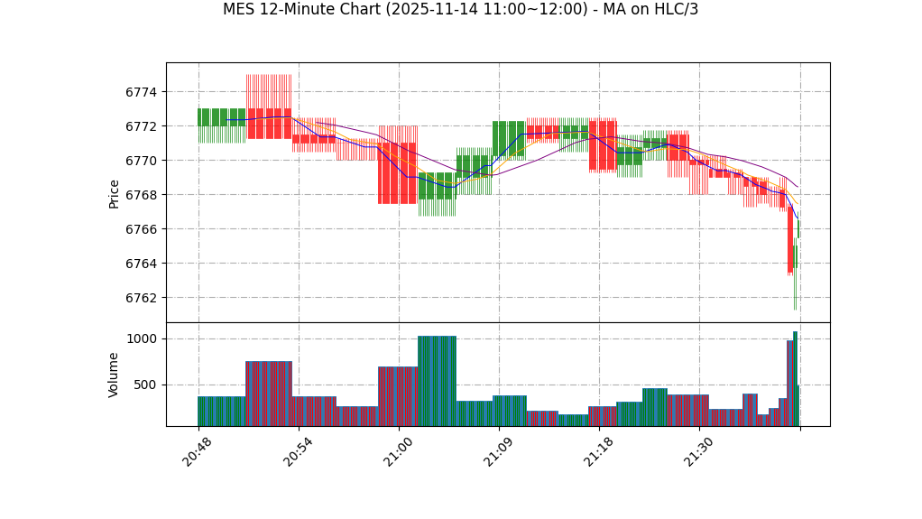 – K线结构(开6766.50 高6767.00 低6766.50 收6766.75):极窄实体/小波动,典型的衰竭或震荡整理信号(短线可能转向或等待放量确认)。权重:10%。