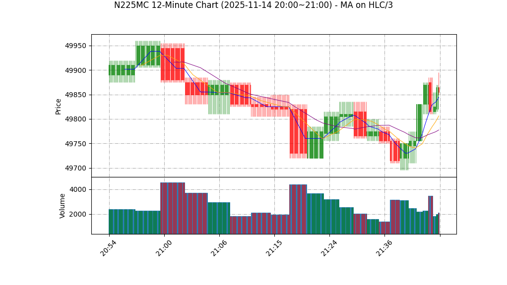 | 11-14 21:00 | 49820.00 | 49860.00 | 49815.00 | 49855.00 | 1138 | 50290.25 | 31.5 | -25.798 | -1.75 |