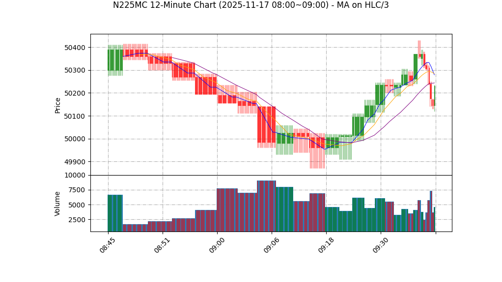 | 11-17 09:00 | 50310.00 | 50320.00 | 50120.00 | 50130.00 | 17354 | 50289.00 | 42.5 | 16.648 | -2.00 |