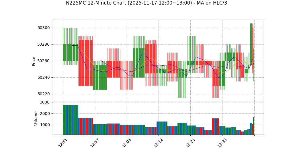 | 11-17 13:00 | 50255.00 | 50275.00 | 50235.00 | 50260.00 | 1211 | 50241.25 | 47.4 | 10.854 | 3.75 |