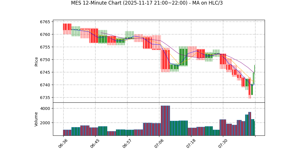 – 价格行为:单条时段K线(开6747.50 高6747.75 低6745.50 收6746.00)属于小实体、低波幅区间,显示多空短期均处观望状态,未出现明显突破或放量下跌/上涨形态。