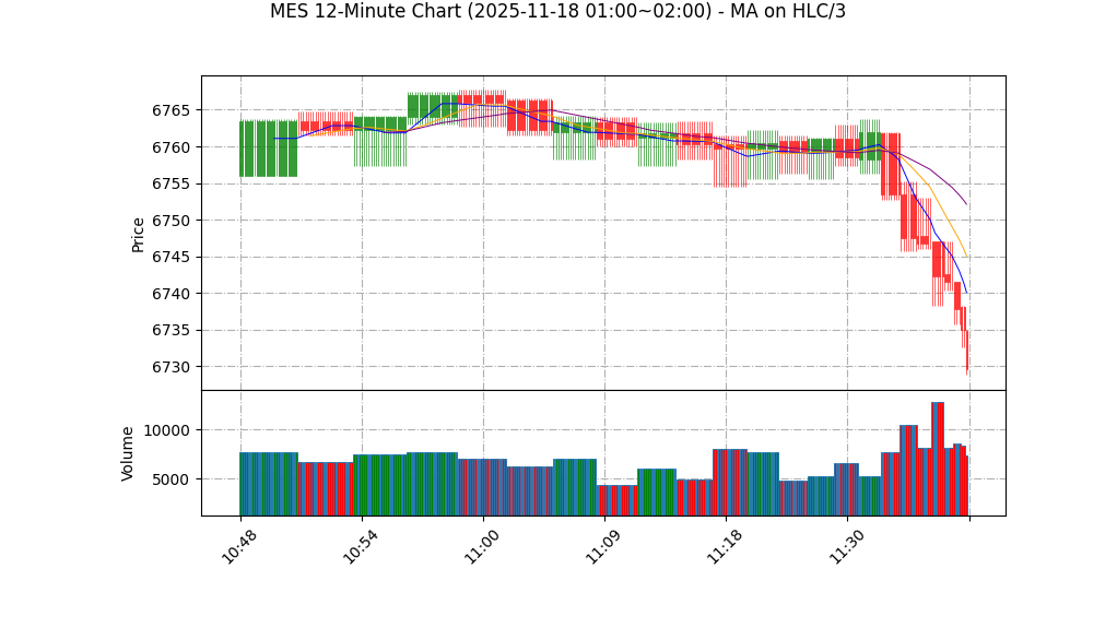 – 形态:当前仅见小范围高低(高6730.25、低6728.00),未形成明显突破或反转形态,短线属于低振幅盘整向下。