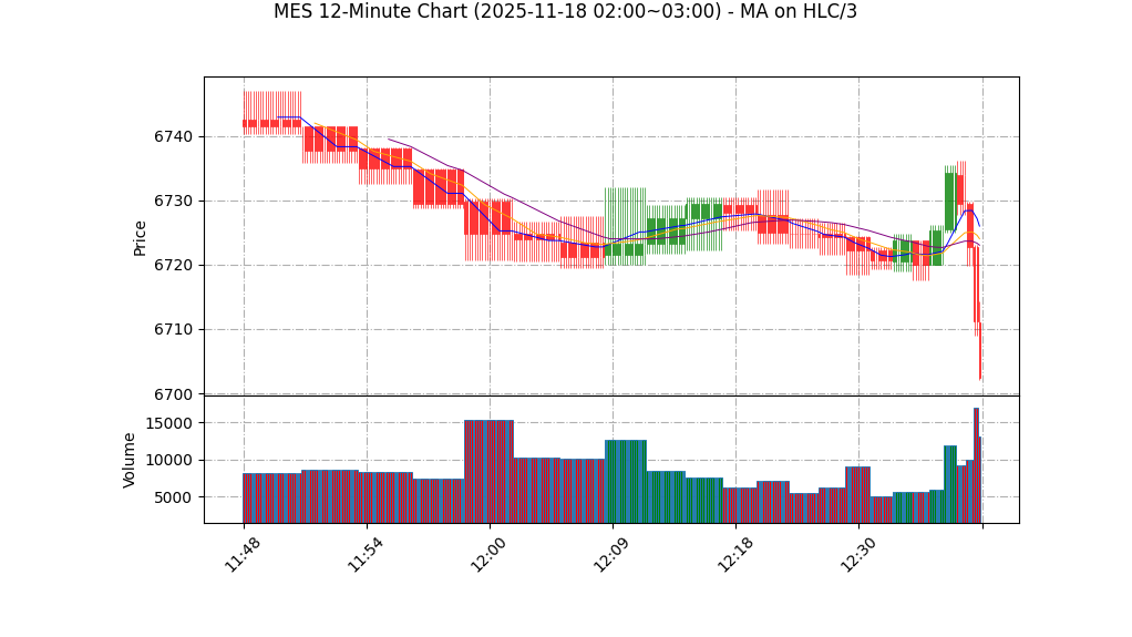 – 短线动量空:若价格下破并收低于6700(带成交量确认或连续小时收盘下破),可于突破后做空。入场价位参考:<6700(以实盘突破为准)。目标1:6670;目标2:6640(分步止盈)。止损:初始止损置于突破上方10-20点(例如止损6718-6720),风险/收益比依目标调整。