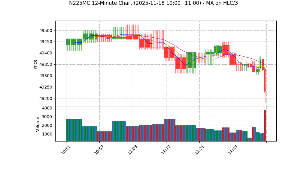 | 11-18 11:00 | 49230.00 | 49240.00 | 49205.00 | 49210.00 | 1642 | 50015.00 | 33.3 | -87.731 | -0.25 |