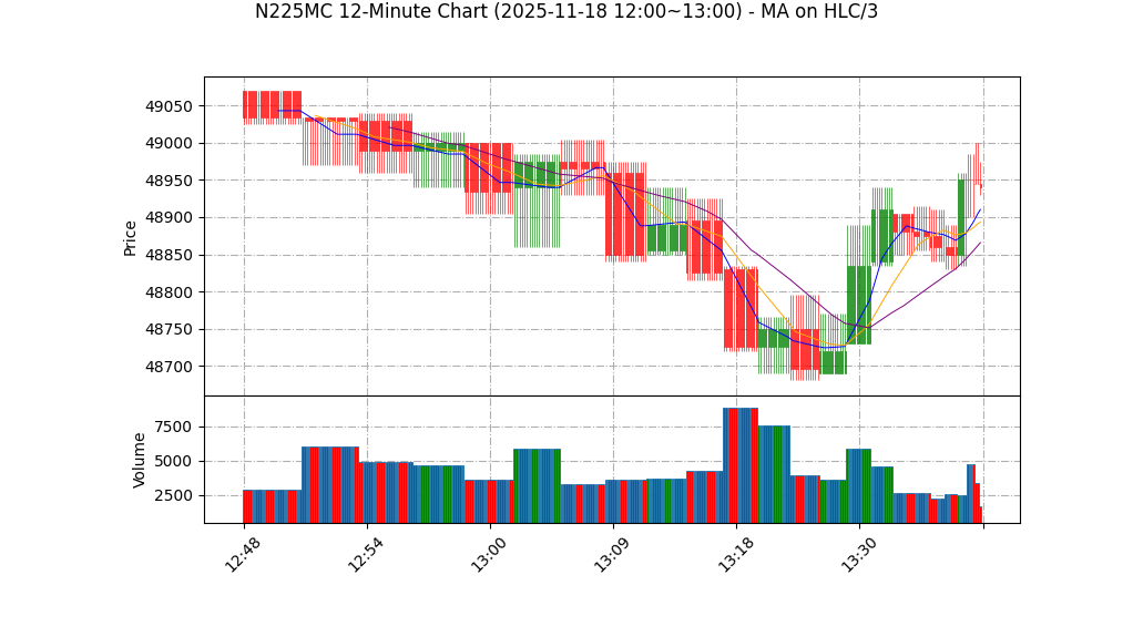 | 11-18 13:00 | 48940.00 | 48950.00 | 48885.00 | 48895.00 | 1832 | 49878.00 | 29.3 | -116.899 | 0.75 |