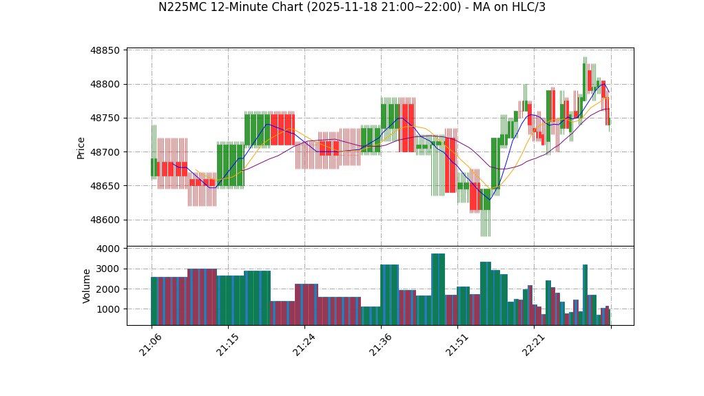 | 11-18 22:00 | 48790.00 | 48830.00 | 48740.00 | 48750.00 | 4404 | 49307.75 | 32.7 | -27.459 | 1.75 |
