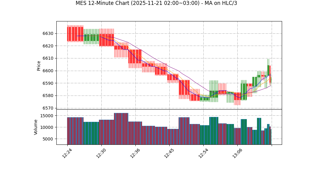 – 现阶段形态:单小时K线段显示价位在区间低位(当时最低6582.25,收于6586.50),未见明显底部吞没或反转形态;因此结构上仍偏空。