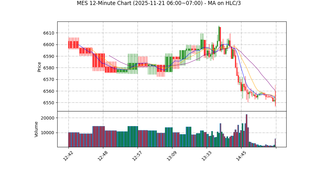 – 价格行为:本周期(07:00)开6560、低6546.25、收6548.5,尾盘较最低点有小幅回升,显示下方有短暂买盘(下跌衰竭特征)。但当日最高6565.5仍低于MA20,说明反弹未能挑战均线。