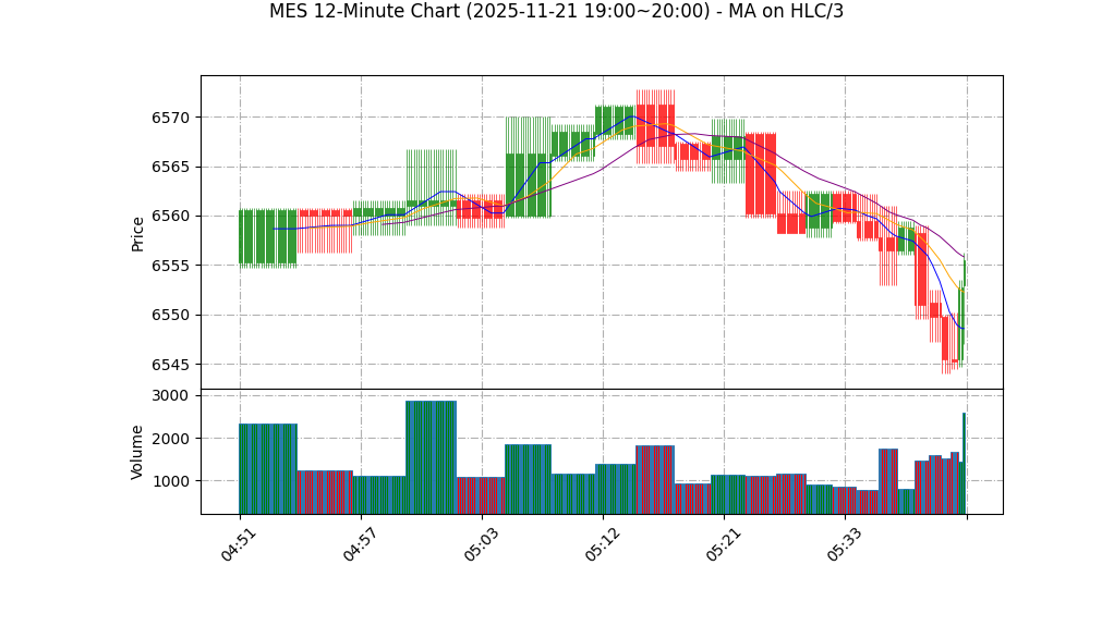 – 价格走势:收盘6551.75处于窄幅区间(6550.75-6553.25),形态呈横盘整理,无明确趋势方向。