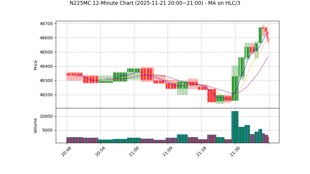 | 11-21 21:00 | 48575.00 | 48645.00 | 48575.00 | 48625.00 | 1546 | 48757.50 | 44.6 | -7.945 | -1.00 |