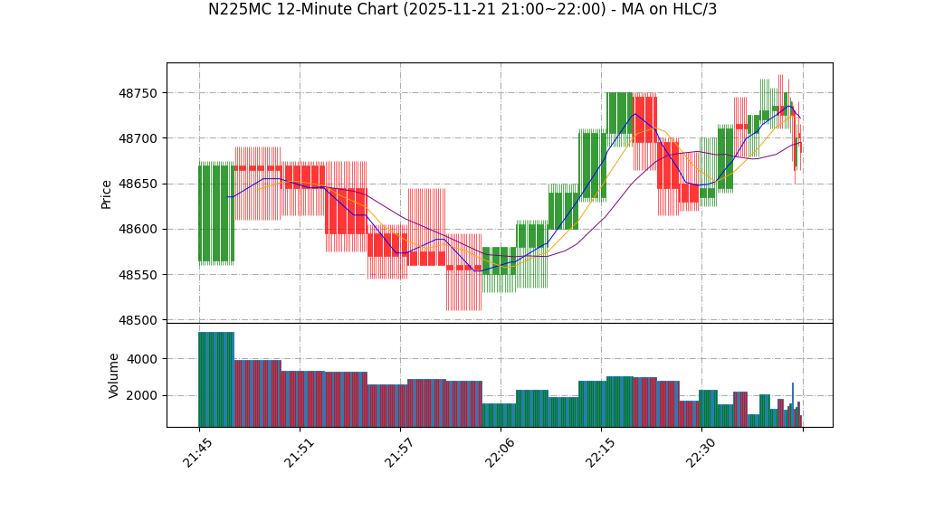 | 11-21 22:00 | 48735.00 | 48740.00 | 48650.00 | 48670.00 | 8164 | 48684.25 | 45.6 | 11.801 | 0.75 |