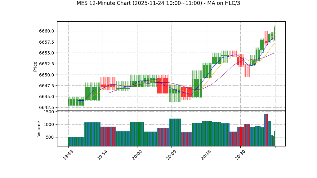 – 形态:仅有单条小时数据,无法构建可靠的K线形态。当前小时高位6661.25、低位/收盘6660.50,属于极窄幅震荡。
