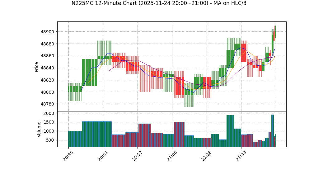 | 11-24 21:00 | 48890.00 | 48910.00 | 48880.00 | 48900.00 | 604 | 48848.75 | 50.8 | 4.664 | 3.50 |