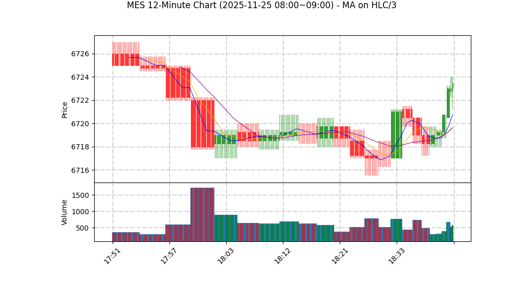 – 价格结构:当前价格6723.25为近端高位(当小时最高6723.50),短期未出现明显突破性上涨,也无连续下破均线的下跌确认。总体看属于高位窄幅运行。