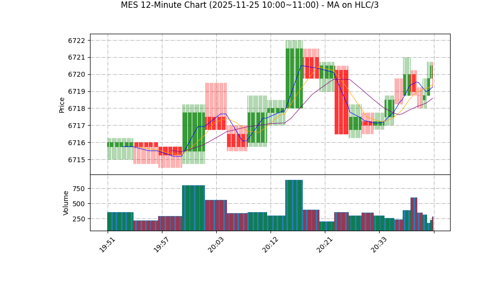 – MA20(6688.10,现价6720.50):价格在MA20之上,短期均线支持多头,但距离不大,未形成明显上行斜率。信号强度:弱。权重建议:20%。